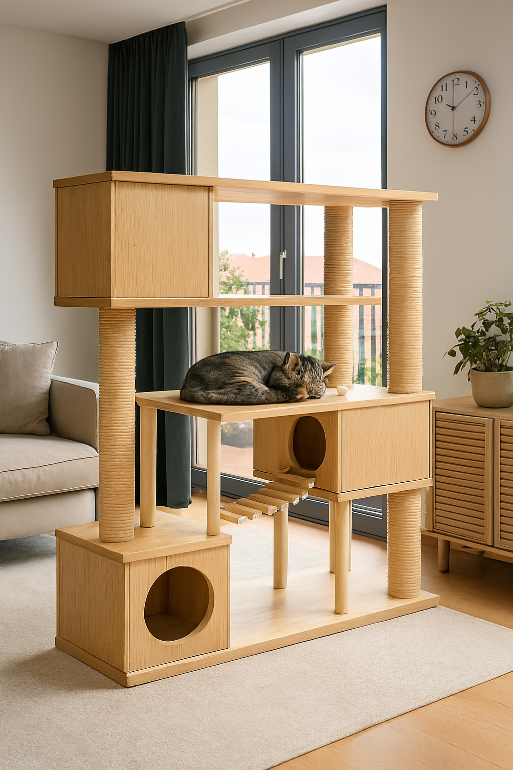 Mit dieser digitalen Bauanleitung erschaffst du einen Katzenturm, der nicht nur funktional und stabil ist, sondern auch ein stilvolles Highlight in jedem Wohnraum darstellt – ein Paradies für jede Katze!