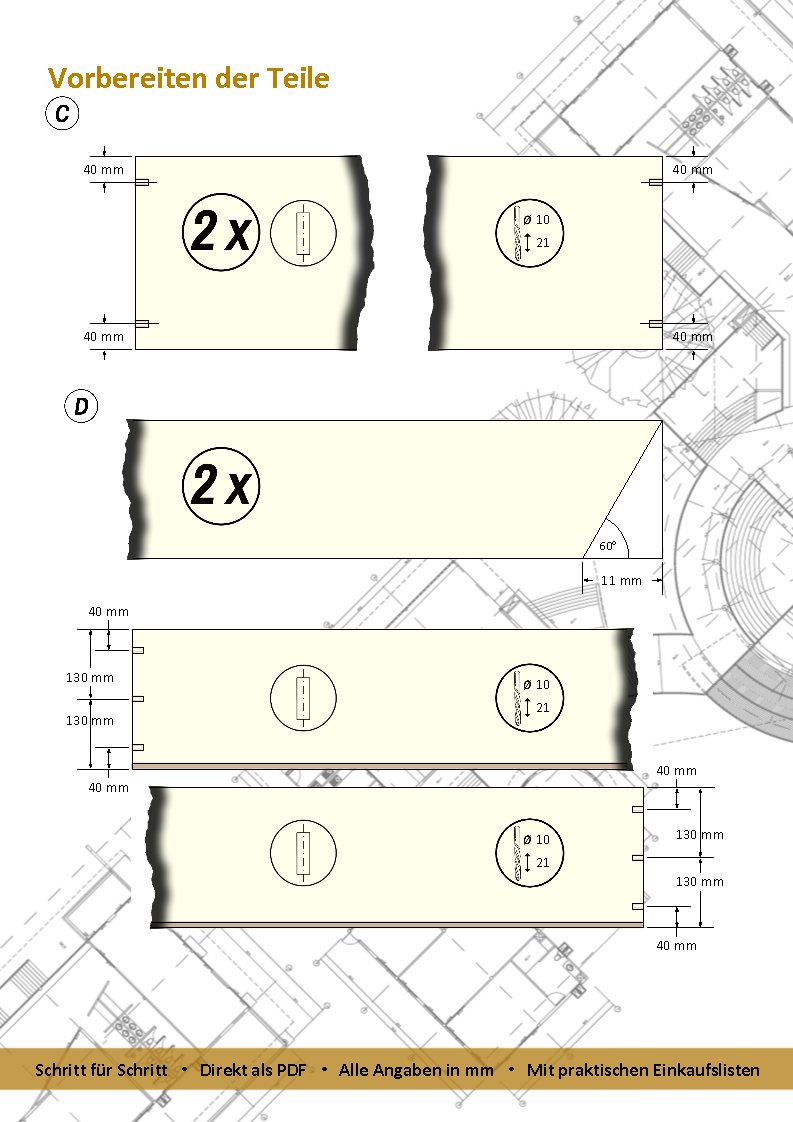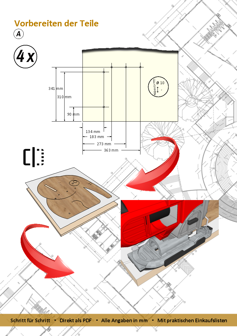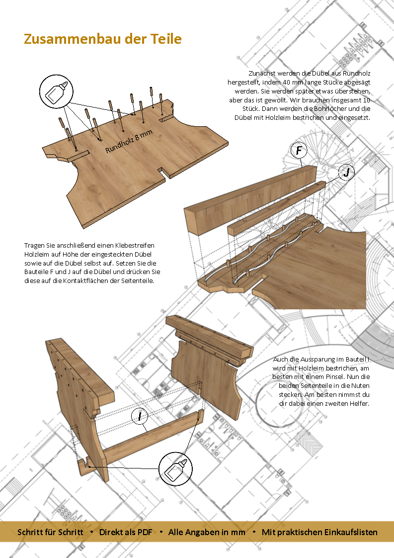 Diese digitale Anleitung enthält alles, was du brauchst, um die Sitzbank mit Tisch selbst anzufertigen: