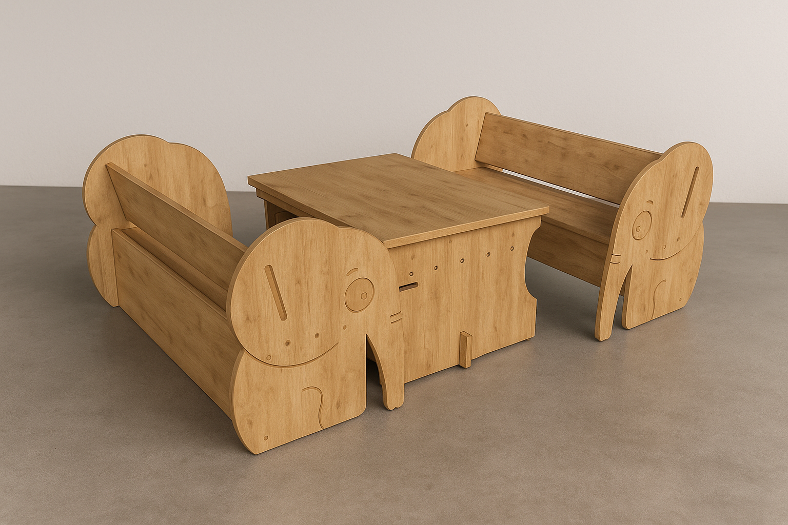 🐘 Digitale Bauanleitung für Kindersitzbank mit Elefanten-Design – Platzsparender Tisch mit Ablagefach